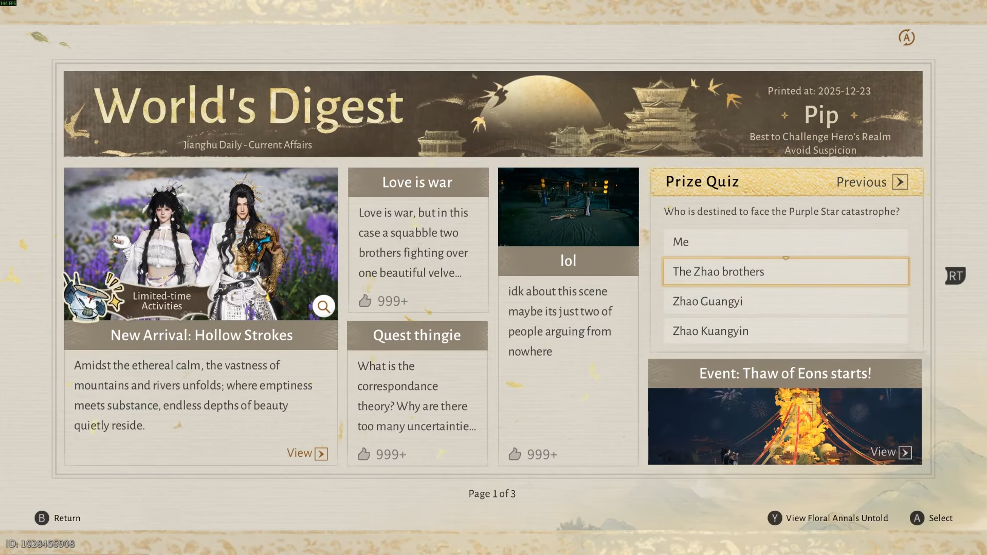 In Where Winds Meet, the Purple Star Catastrophe emerges in the World’s Digest Prize Quiz to see if you’ve followed Kaifeng’s unfolding drama. It’s found under the Eastern Herald in the Leisure tab of Wandering Paths.