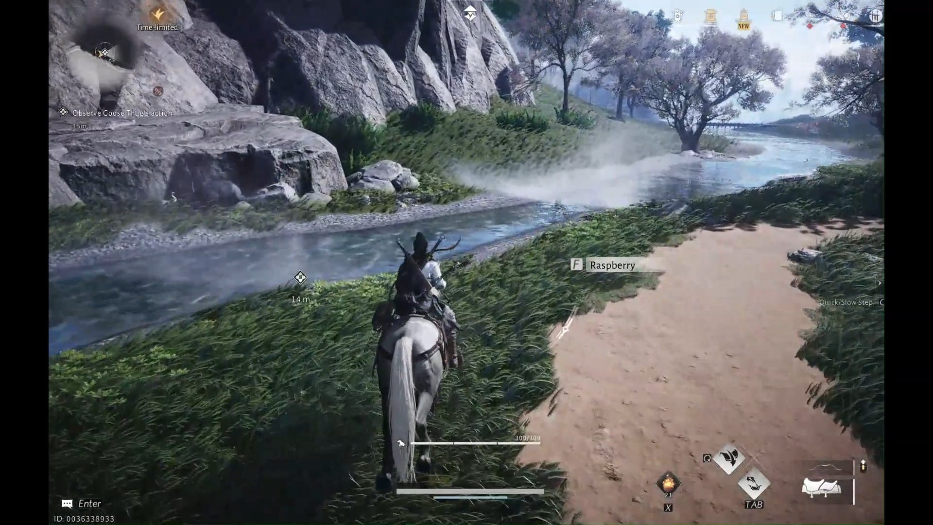 You can travel faster with a horse. Stop by the stream where the goose is bullying the bear (that's correct).