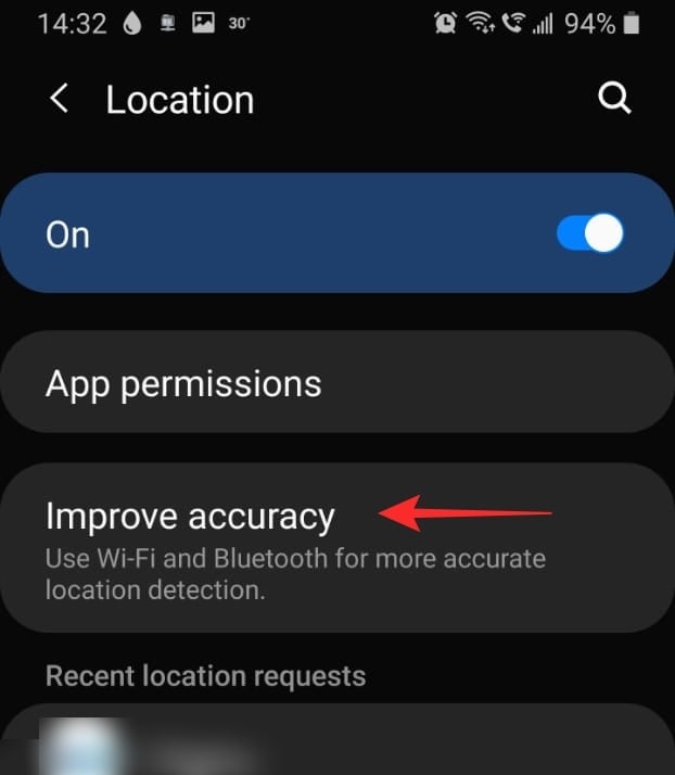 To enable Improved accuracy on your device, go to the device Settings > Location and tap on ‘Improve accuracy’. Here you can turn on ‘Wi-Fi scanning’ as well as ‘Bluetooth scanning’.