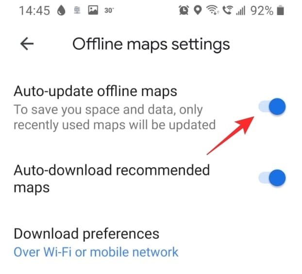 Tap the Settings cog in the top right corner. Toggle ‘Auto-update offline maps’ on.
