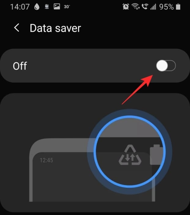 To turn off Data saver, go to your Device Settings > Connections > Data usage, and turn ‘Data saver’ off.