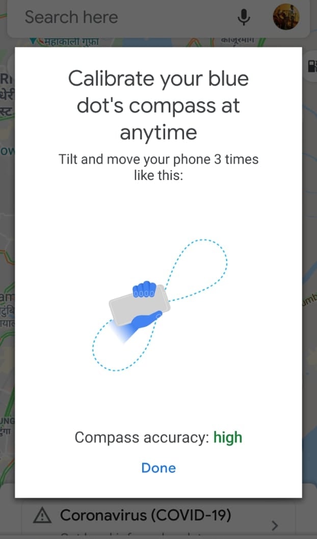 You can also calibrate the app’s compass to help it locate you faster on the map. To do so launch Google maps and wait for it to pinpoint your location. Now tap on the blue location dot.