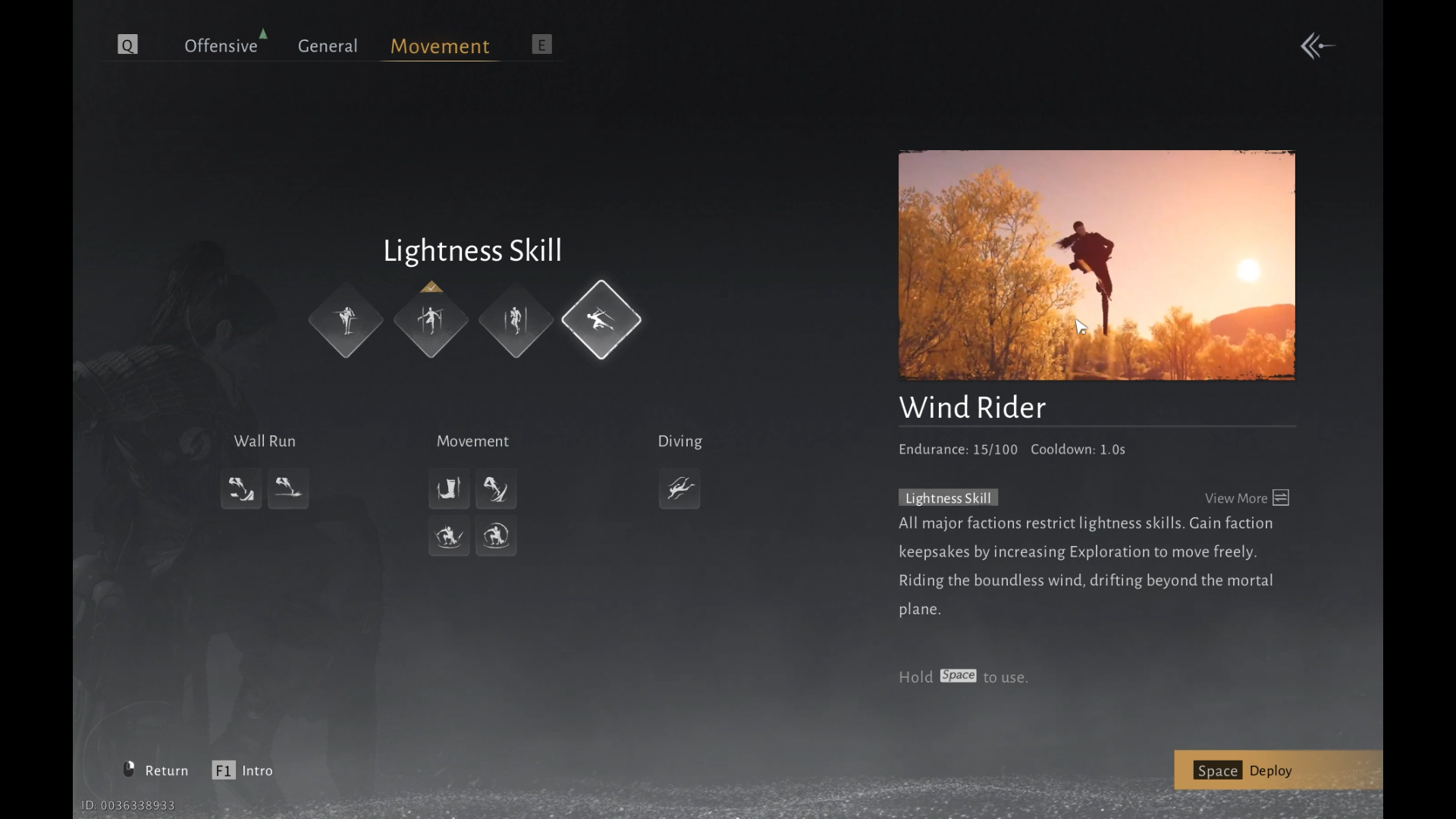 Once unlocked and equipped, Wind Rider lets you perform aerial dashing and extended flight by holding the jump key (space). This skill functions as a high-mobility aerial dash enabling faster traversal across landscapes and quick repositioning during combat.