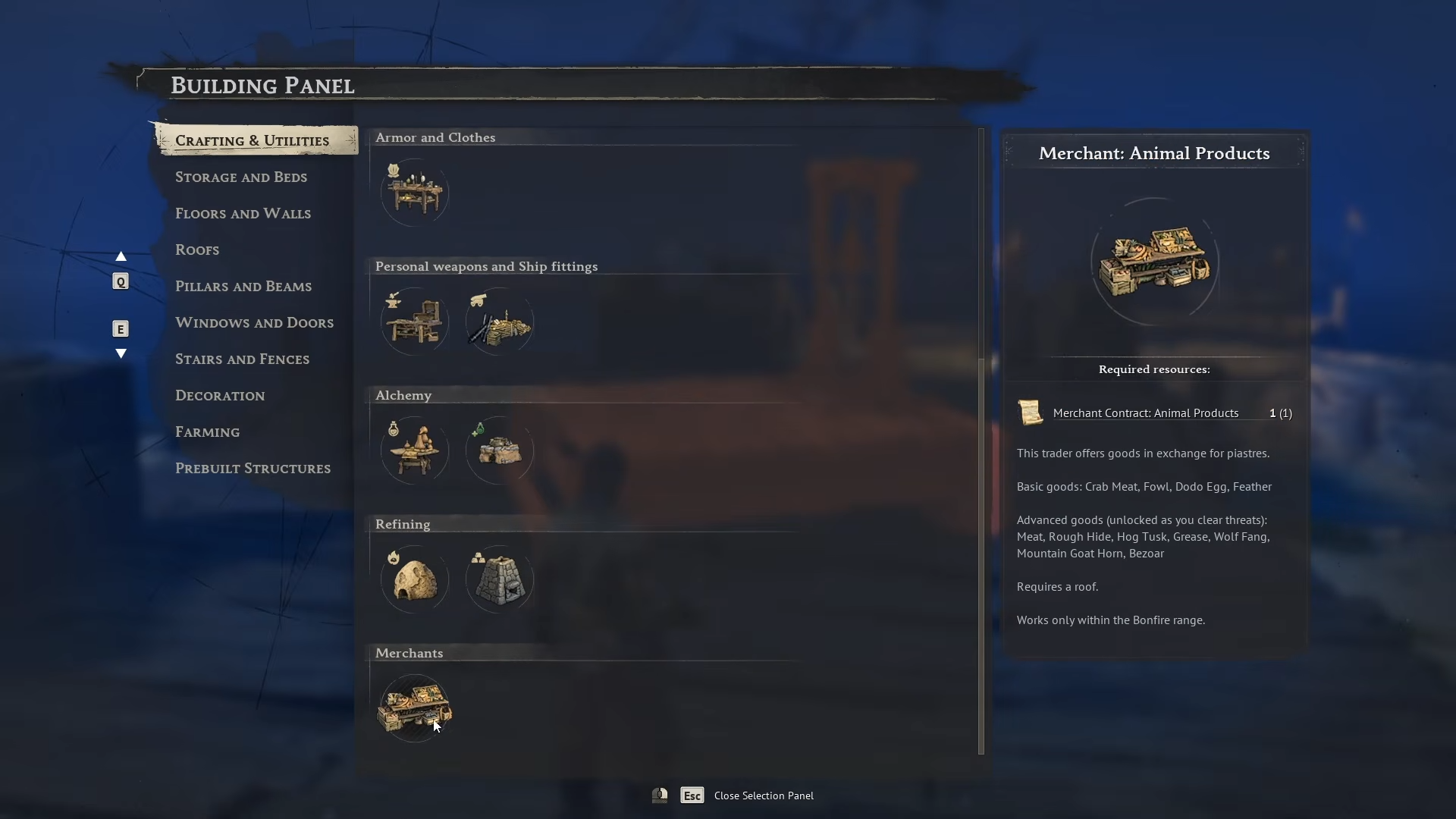 - Each contract costs 100 Piastre and enables a unique merchant stall for food, natural resources, or animal products.
