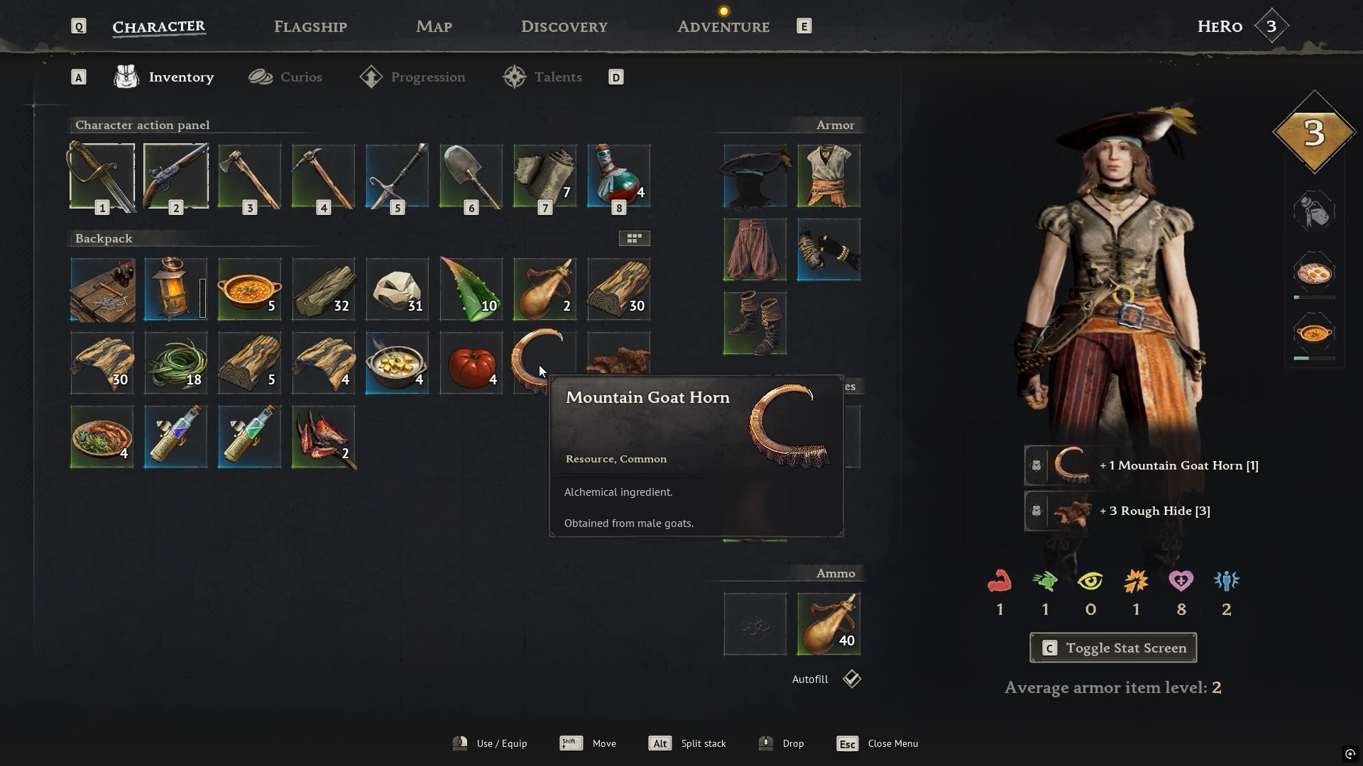 Mountain Goat Horns provide essential crafting potential in Windrose, obtained by hunting specific wildlife in challenging terrain.