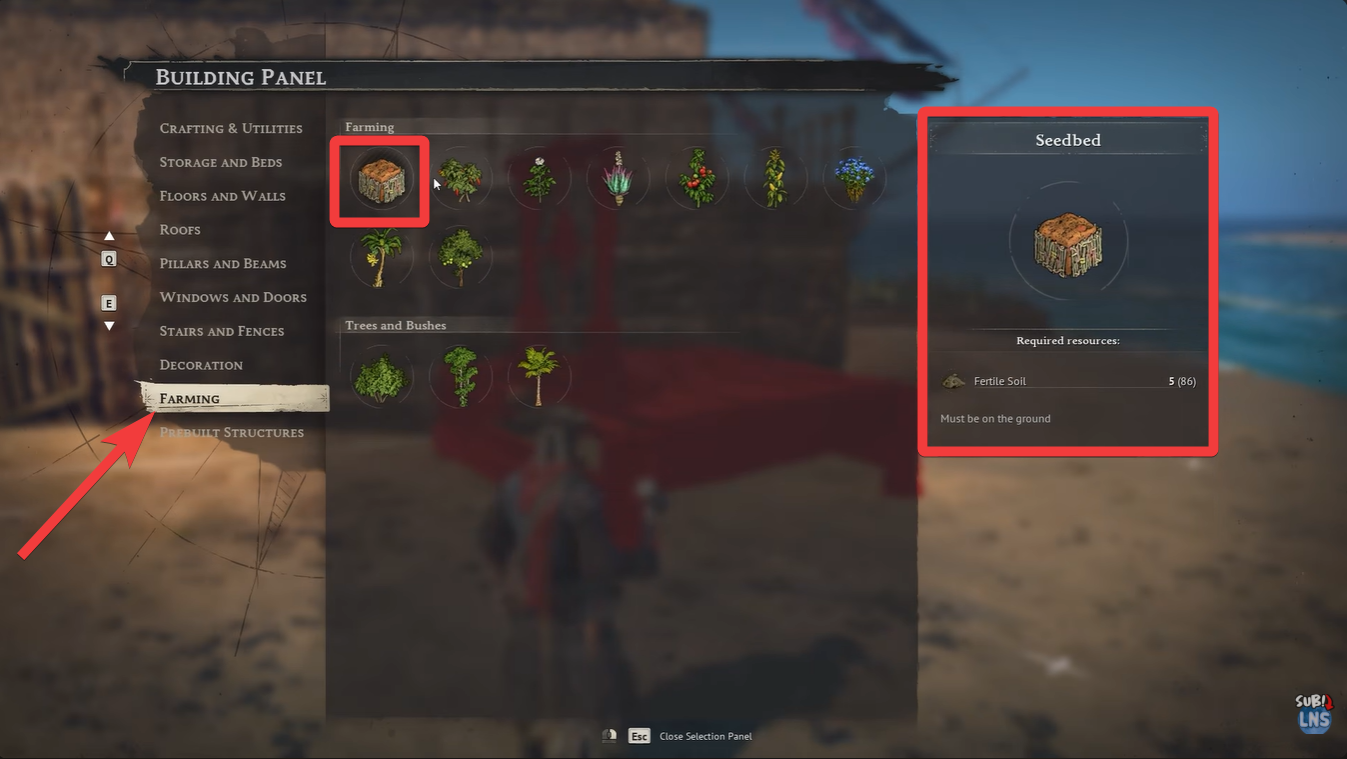 Select the Seedbed structure and place it on your base plot using the Fertile Soil you gathered.