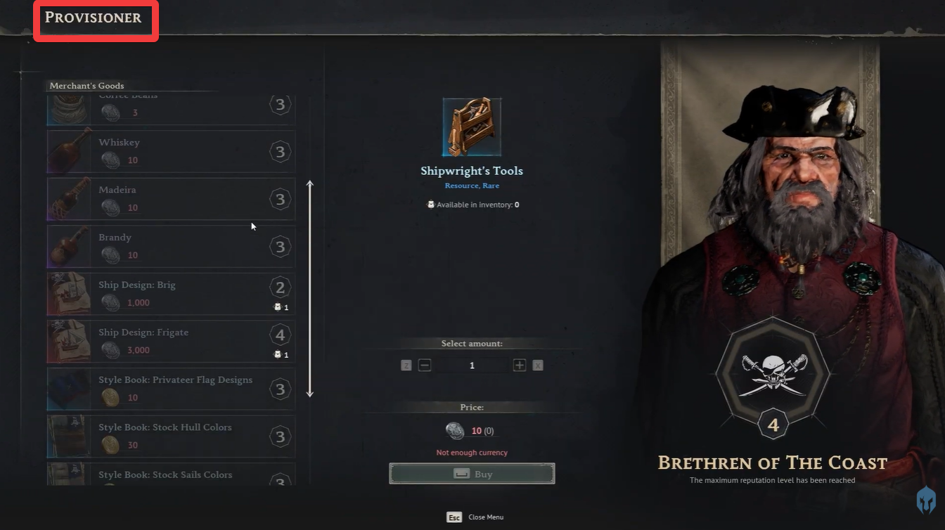It’s easy to assume Tortuga would act as a marketplace, but that’s not how the game works. Tortuga is strictly a central hub for reputation management and purchasing items—not selling. This design forces you to engage with the wider world rather than staying in one safe location.