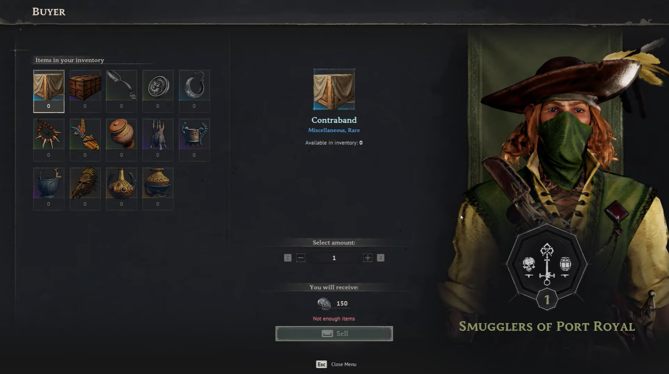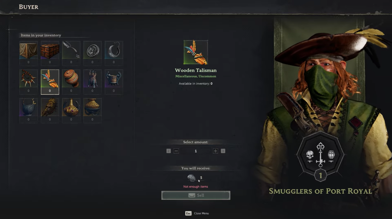 The interface is simple: interact with the smuggler, select items you want to sell, and confirm the transaction. There are no complex trading mechanics, making it beginner-friendly yet essential.