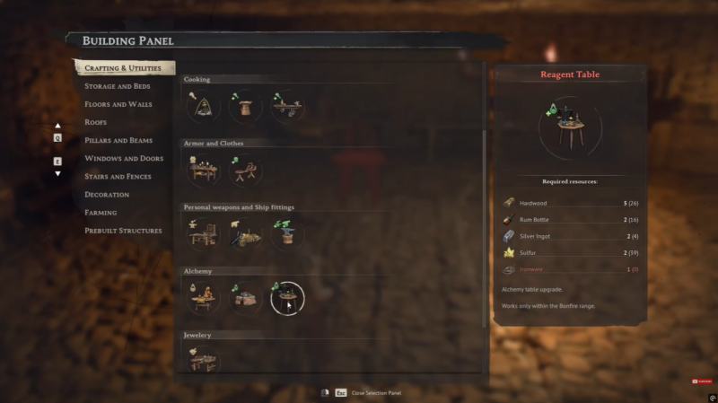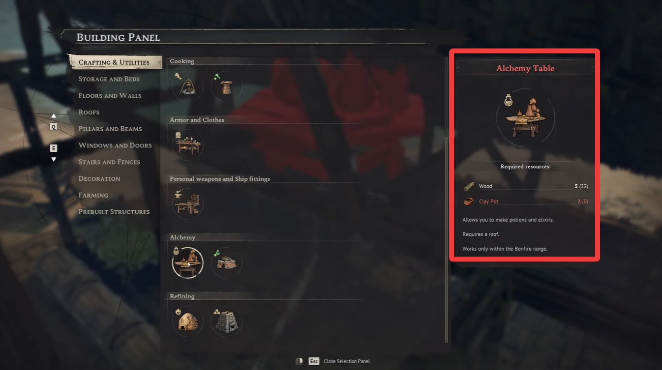 Once built, the Alchemy Table allows you to process raw materials like bark into refined resources such as Tannin. Without it, you won’t be able to access the recipe at all.