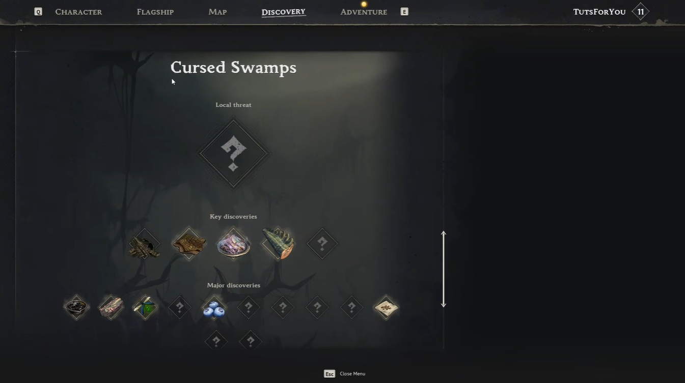 Enter the Cursed Swamp and begin exploring major discoveries. Focus on uncovering points of interest, as these are where tar is typically found.