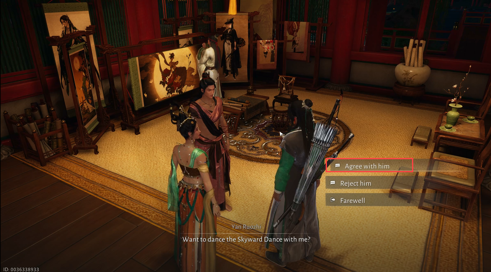 Reach the Hero's Assembly, and there you will find Xu Geling and Yan Ruozhi. Yan Ruozhi will ask you to dance with him; accept the offer.