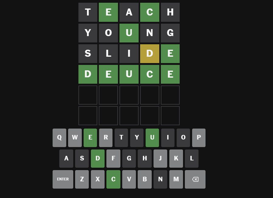 - Use elimination smartly – Even a “wrong” guess is useful. Pay attention to grays, greens, and yellows to cut down options logically.