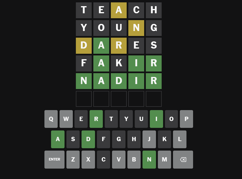 - Use elimination smartly – Even a “wrong” guess is useful. Pay attention to grays, greens, and yellows to cut down options logically.