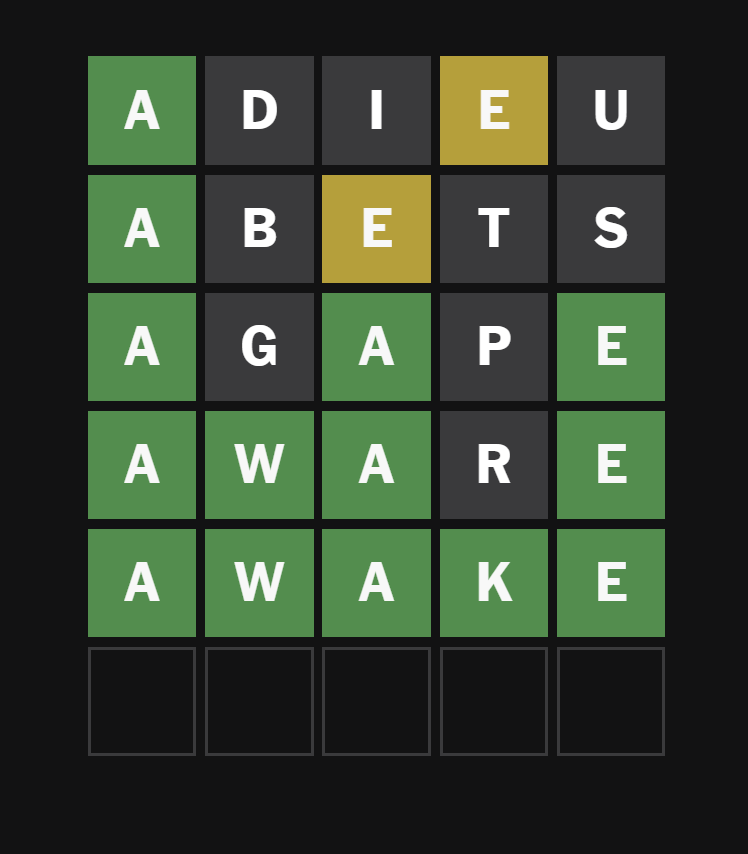 Use these to narrow down your guesses; the last few basically lock in the solution if you’re paying attention to your tiles.