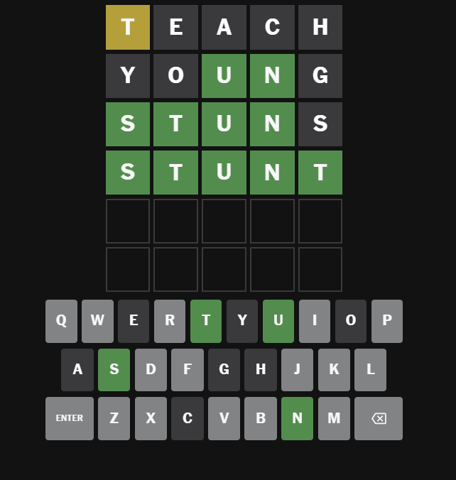 - Use elimination smartly – Even a “wrong” guess is useful. Pay attention to grays, greens, and yellows to cut down options logically.