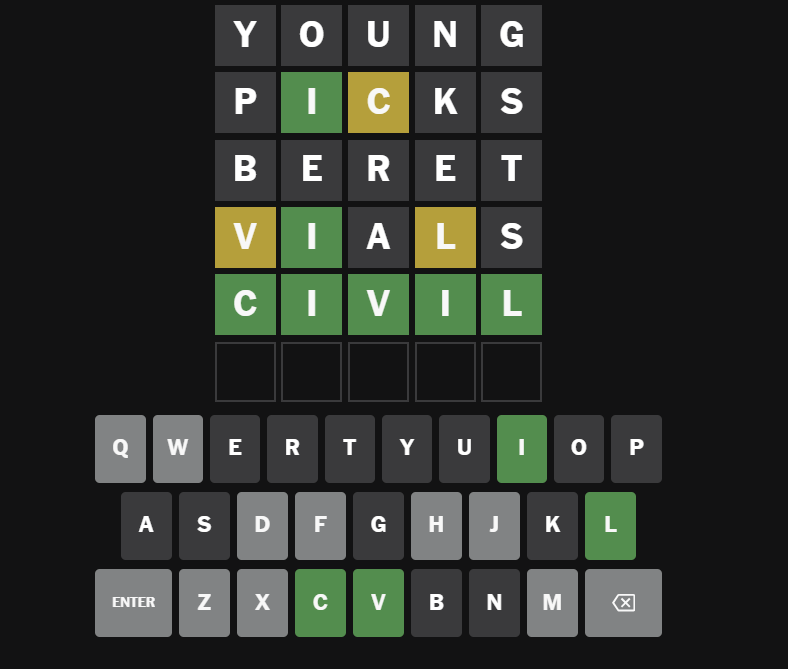 - Look for word patterns – Endings like “-ED,” “-ER,” or “-Y” are common in Wordle answers, so keep those in mind when filling blanks.