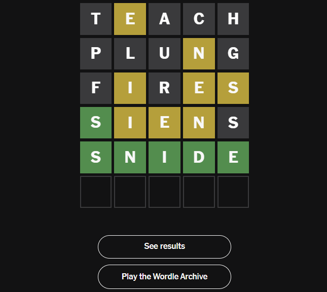 SNIDE made today’s solve feel clever and slightly prickly. Its single vowel and pointed meaning created a puzzle that required caution and intuition in equal measure. Many players likely hovered between similar options before snapping to the right one. Did you crack it in four?