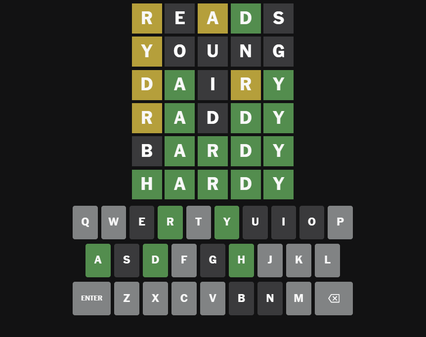 - Look for word patterns – Endings like “-ED,” “-ER,” or “-Y” are common in Wordle answers, so keep those in mind when filling blanks.