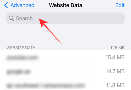 Select Website Data option at the top of the page.