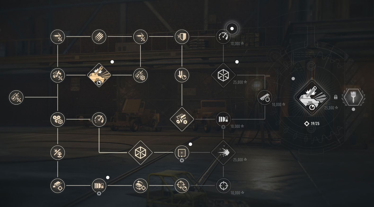 You no longer use Field Modifications. Tier XI replaces them with a purely positive, modular tree system built around small, large, and final nodes—each node costs XP and enhances your tank’s stats or special mechanic. You spend up to 25 nodes across progression, crafting your preferred balance of firepower, mobility, survivability, ammunition, and special loadouts.