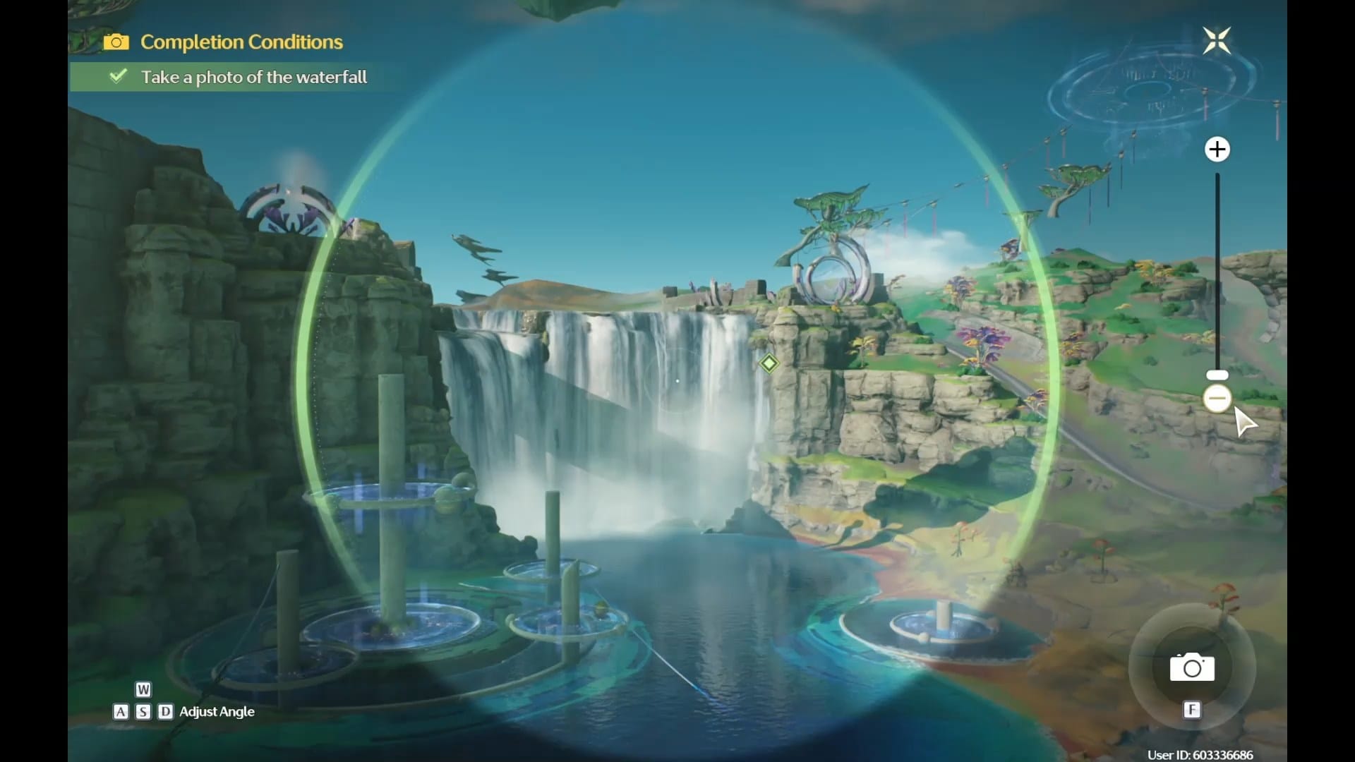 Go to the location where Ancelo will be waiting for you. Turn towards the waterfall to take the photo.