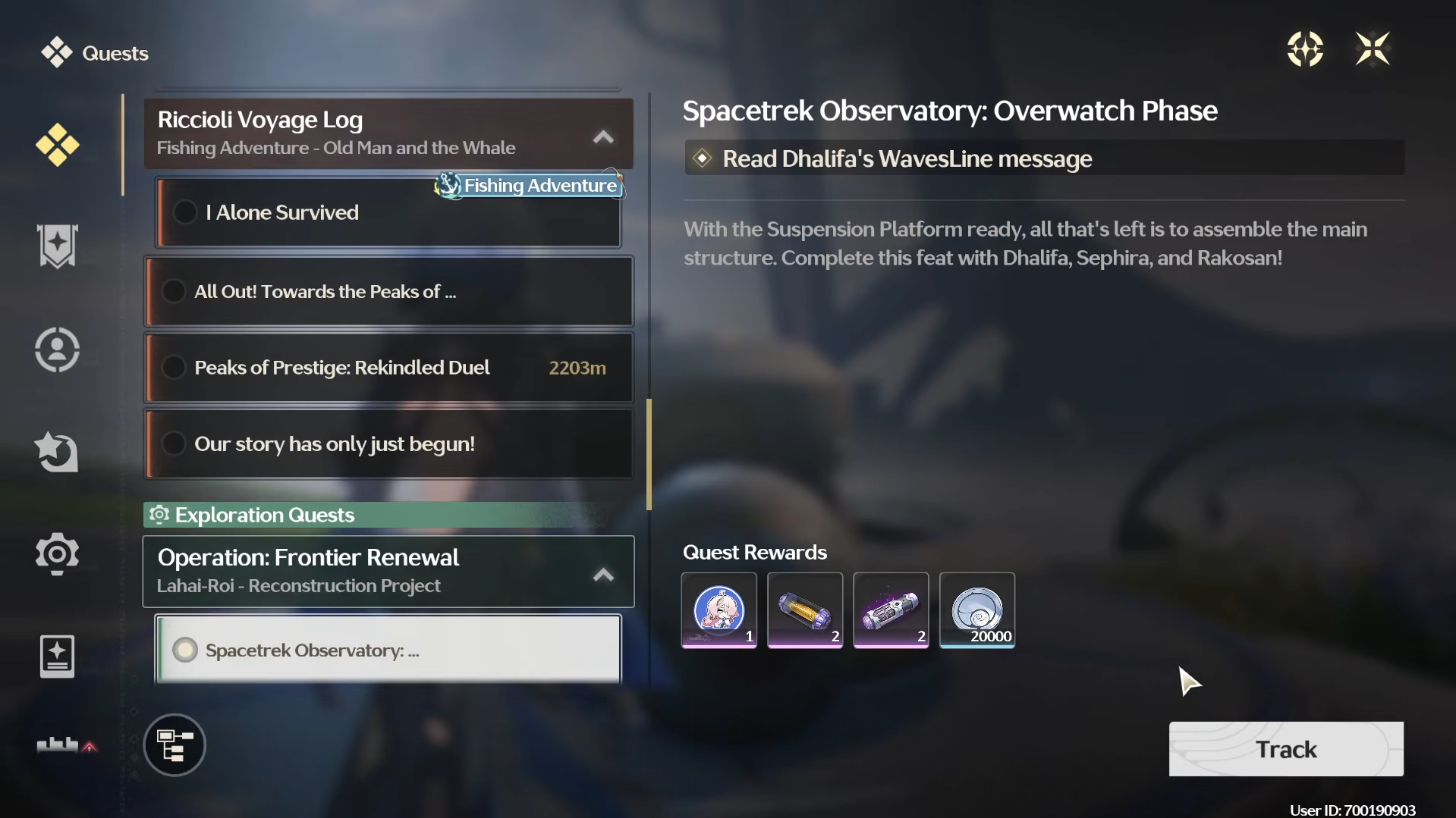 After tracking the Spacetrek Observatory: Overwatch Phase quest, read Dhalifa's WavesLine message to start the quest.