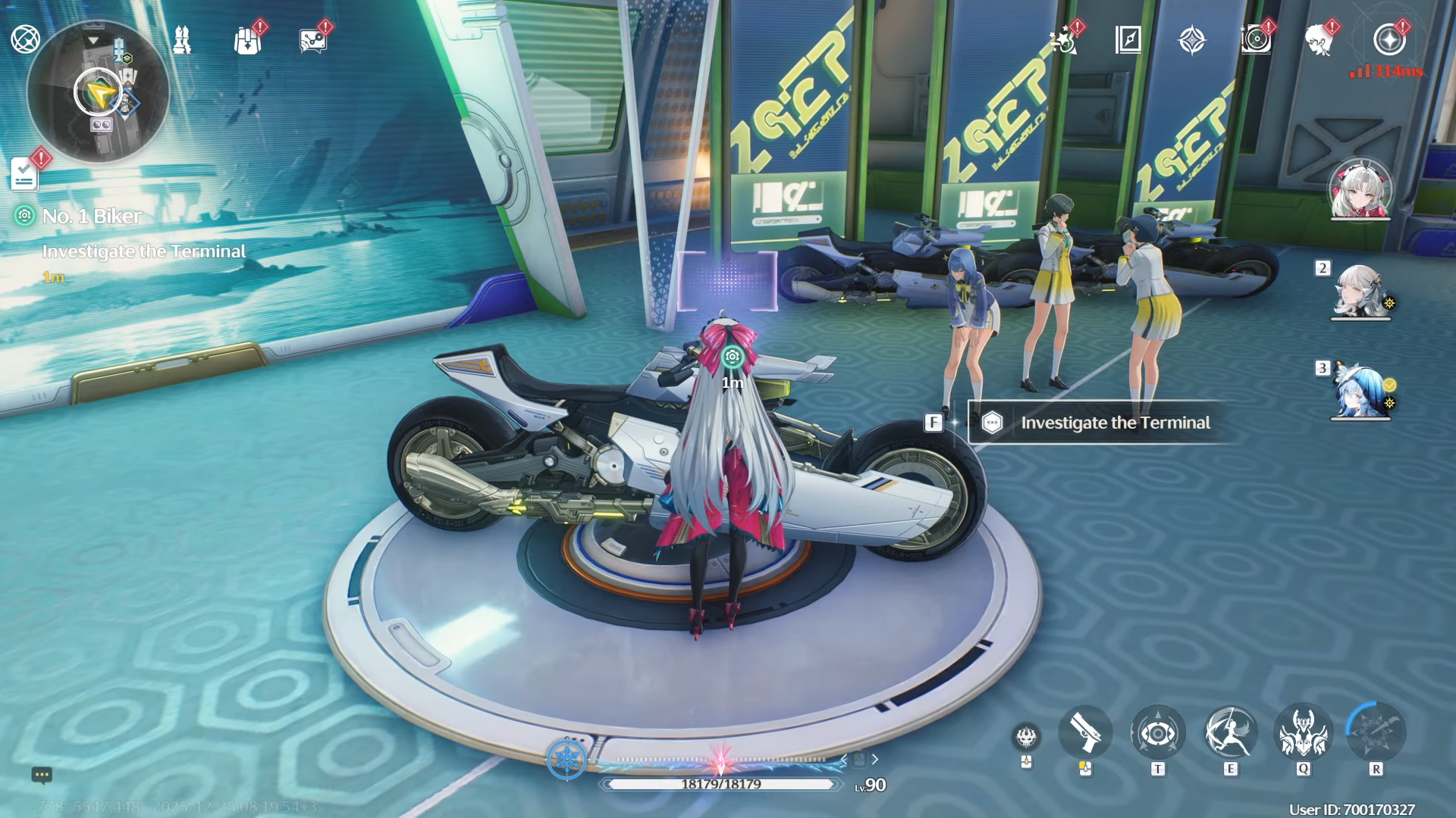 After talking to the AI Assistant, go to the terminal nearby with the bikes and investigate.