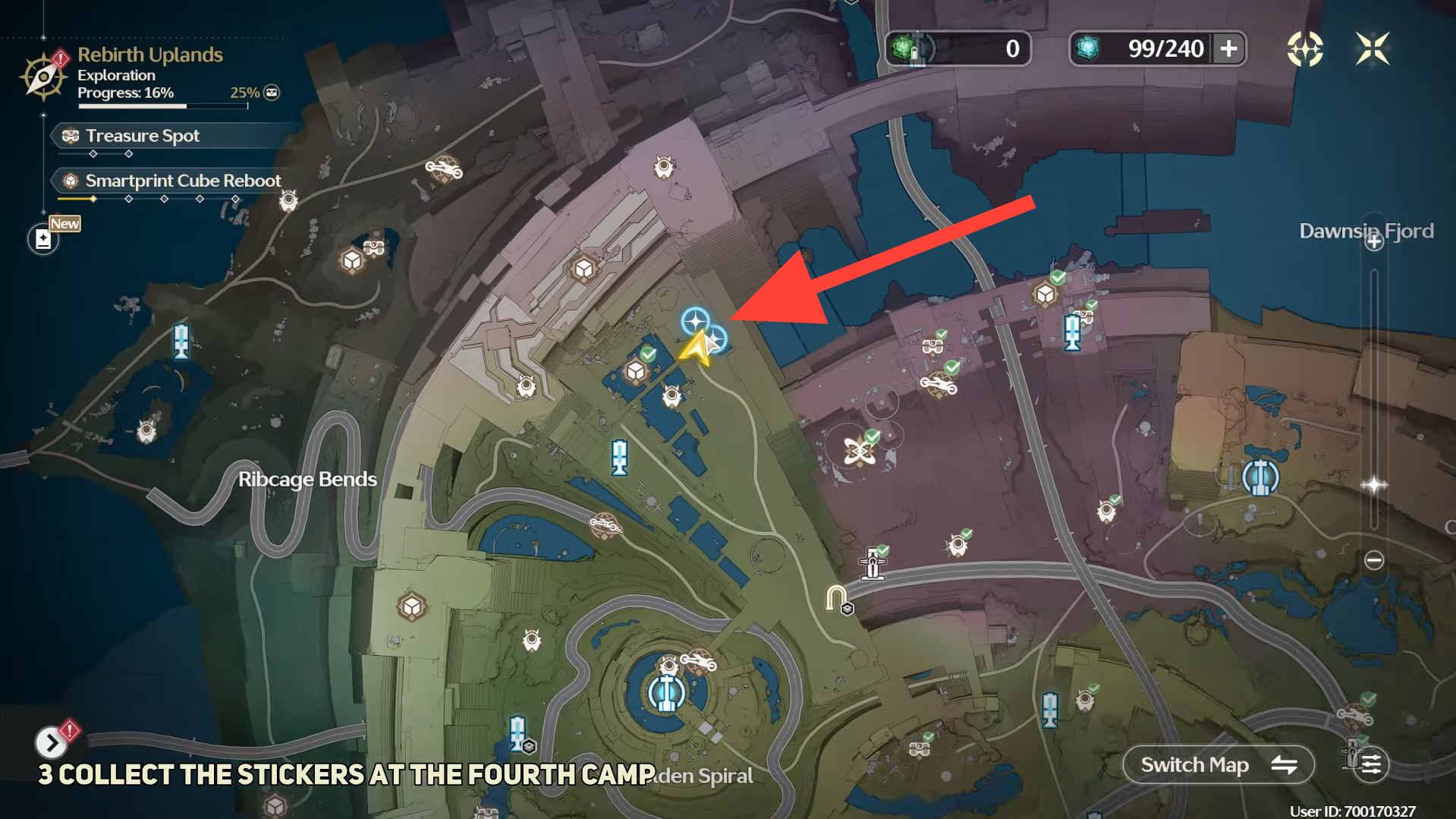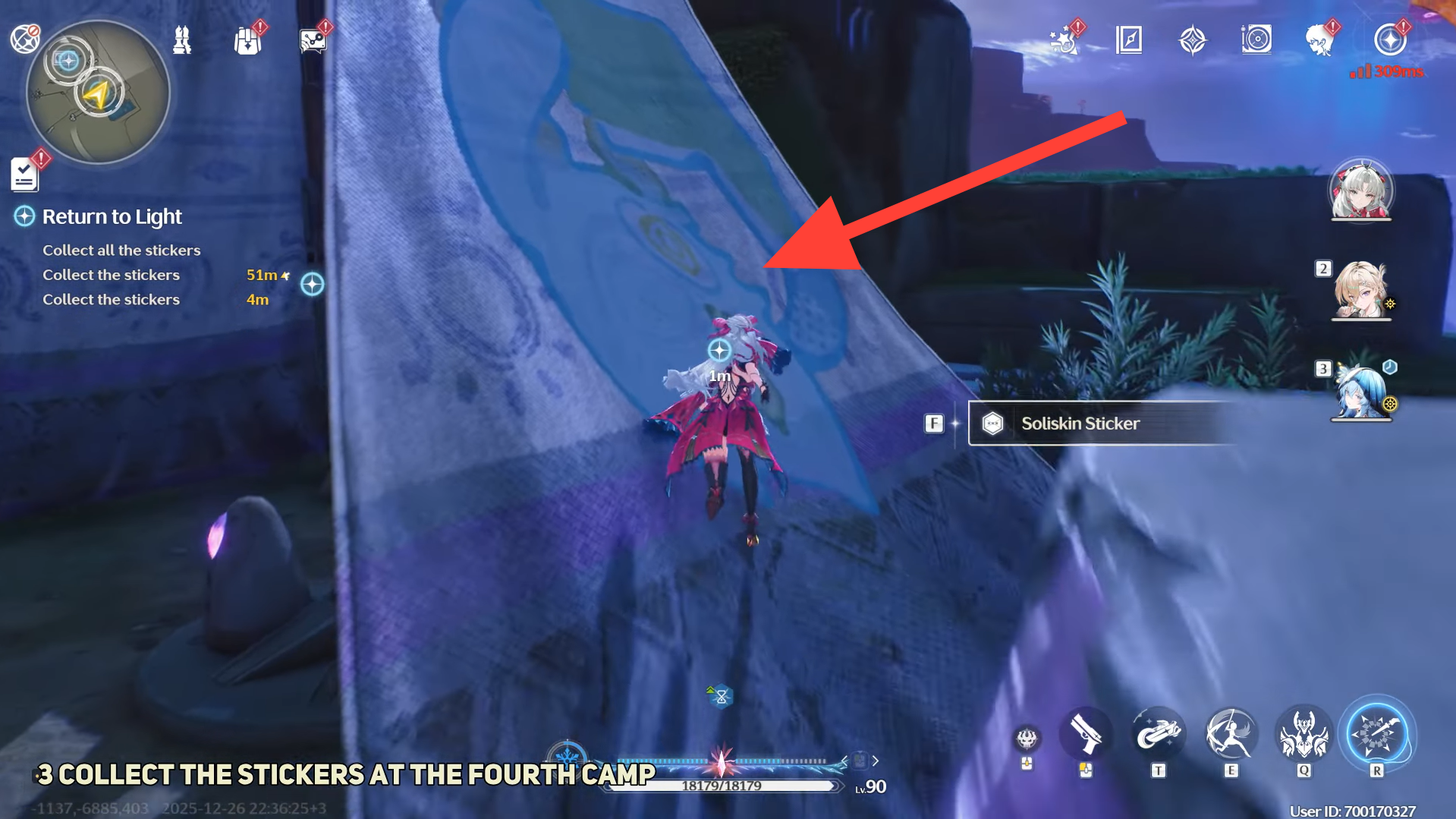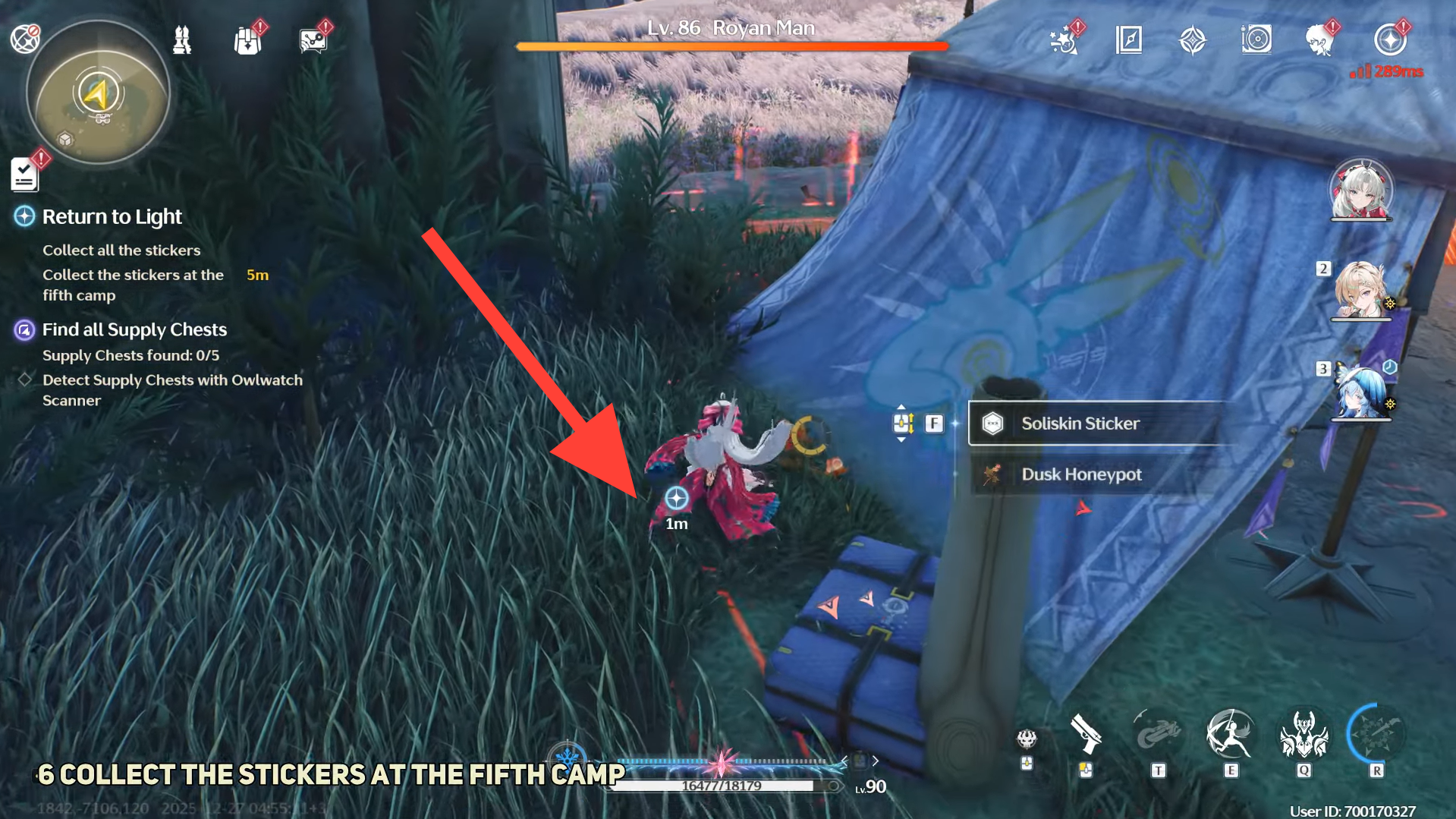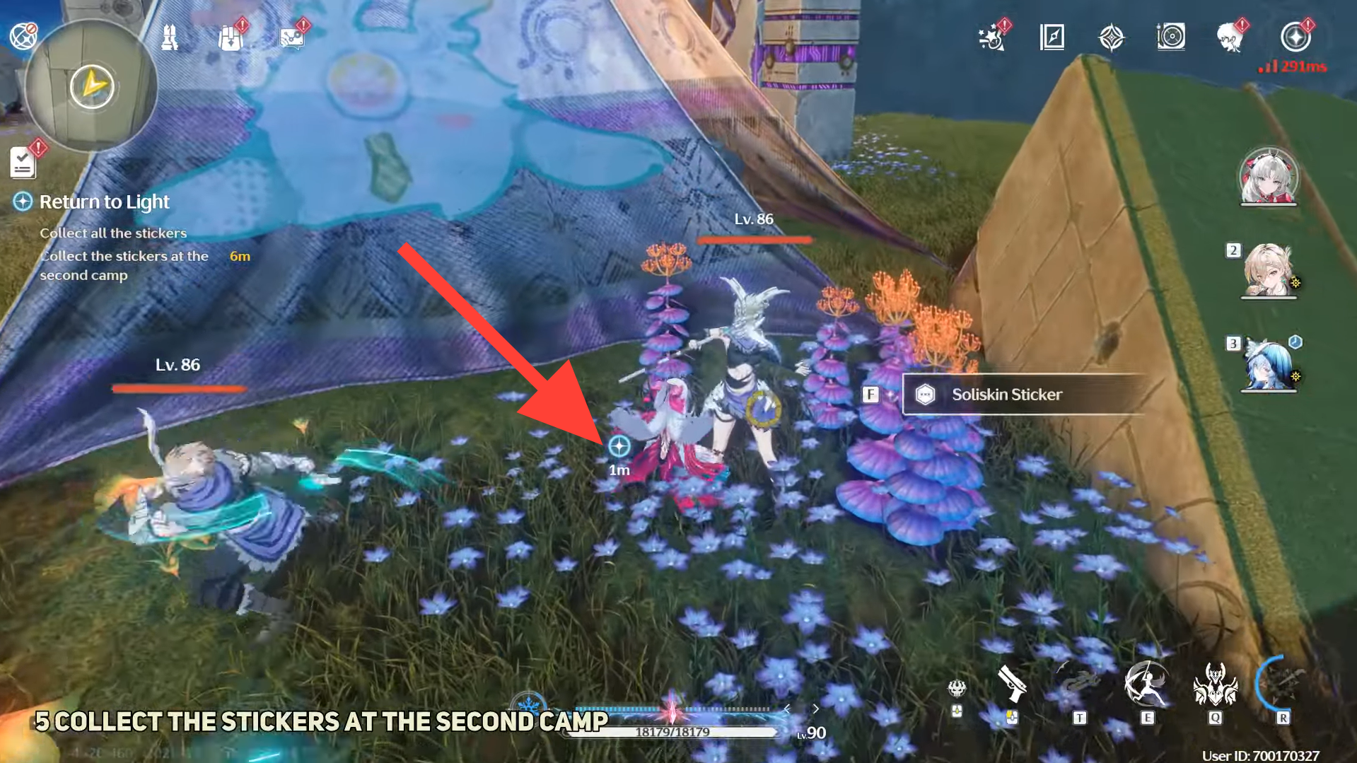 Go to the marked location below to collect the Soliskin Sticker from the first camp.