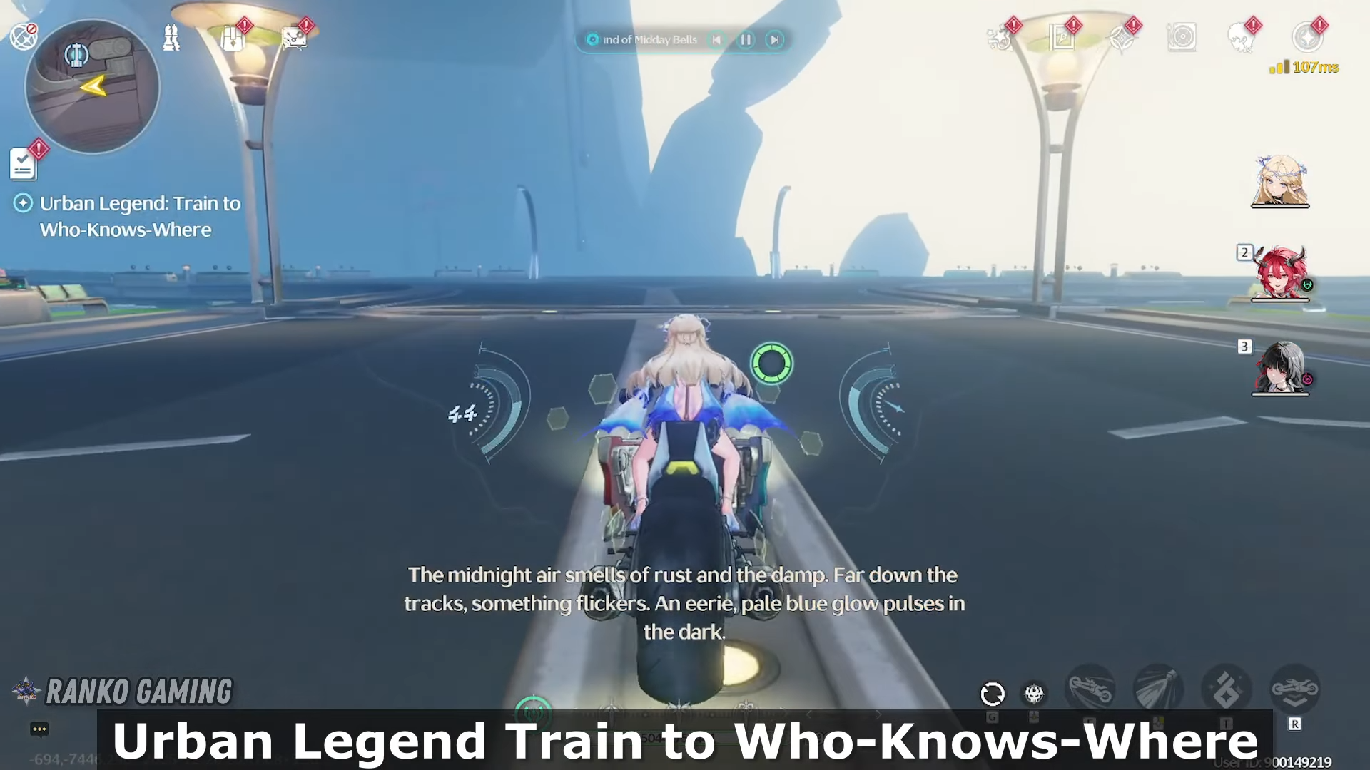 Go to the marker to wait for the 'Midnight Train'. Once it does, get on your bike and chase after it.