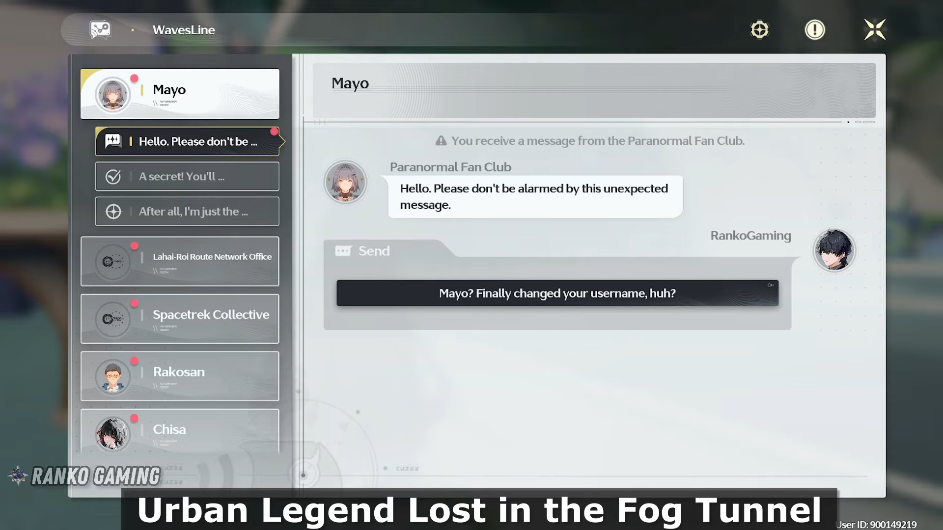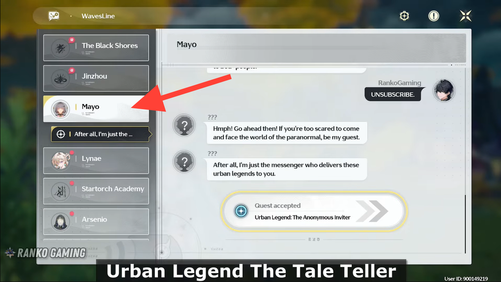 Replying to her message will start the Urban Legend: The Anonymous Inviter questline, which includes five smaller quests. These are: