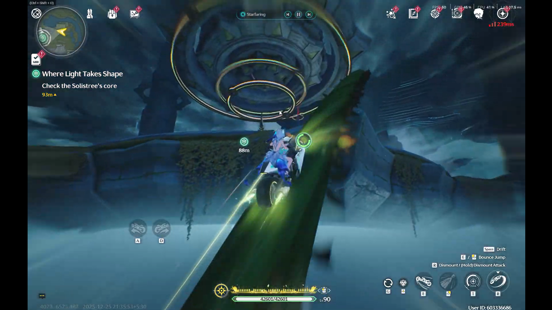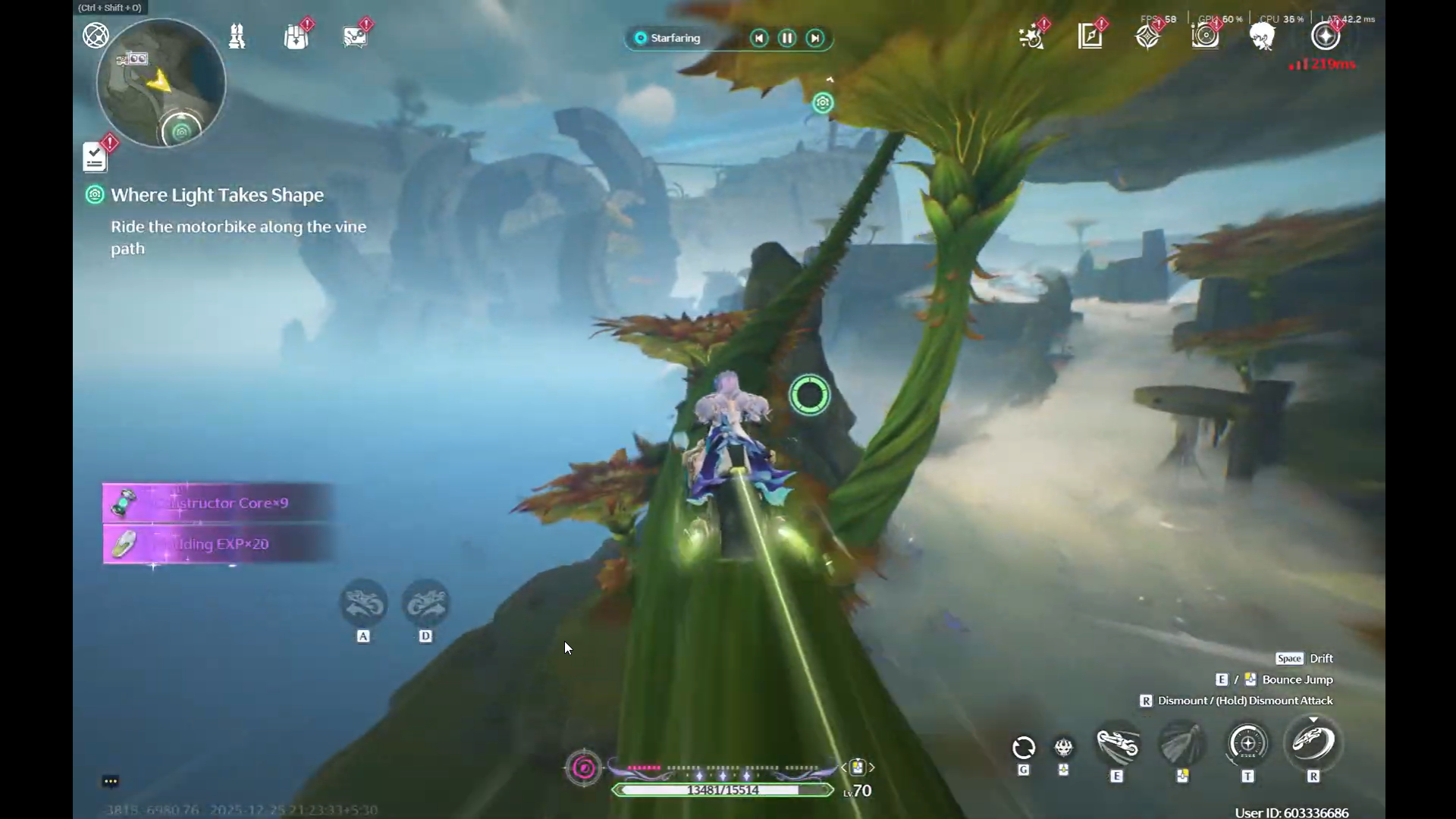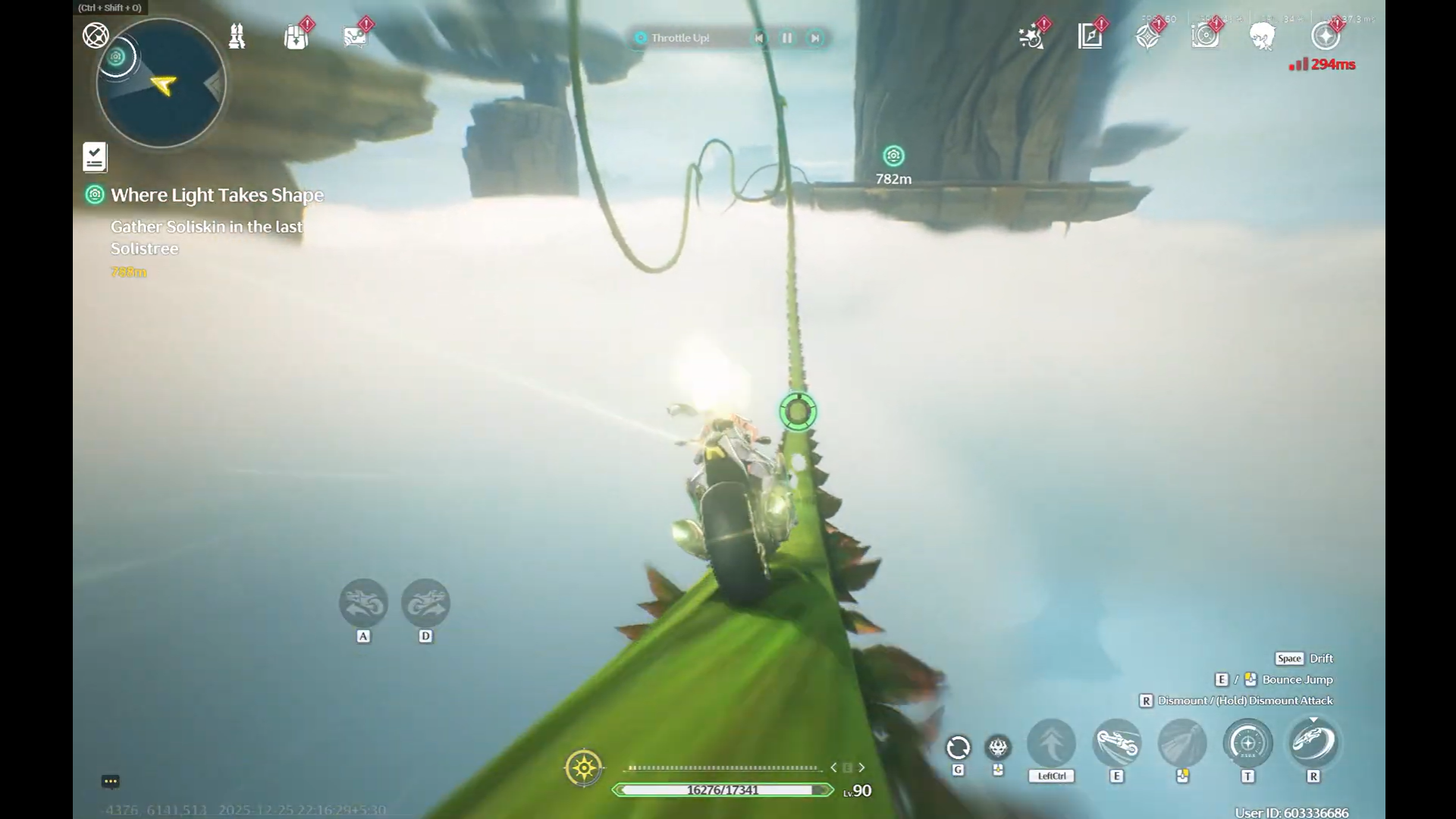Use E while holding A/D to leap off the trail on the vine paths. This path takes you to the Solistree.