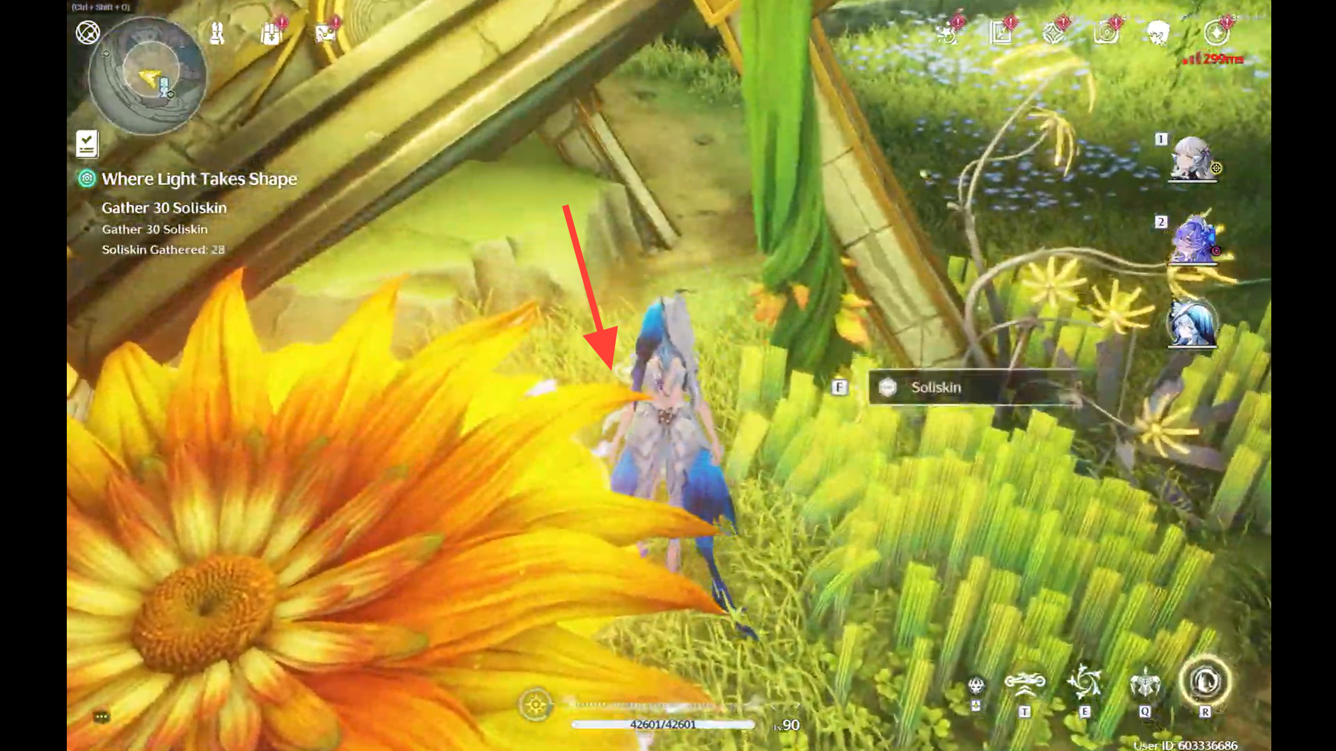 Gather 2 more Soliskins in the new area to open the door to the next area. Both Soliskins are hidden behind vines and flowers.