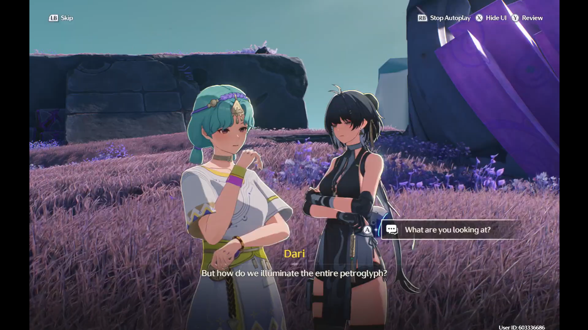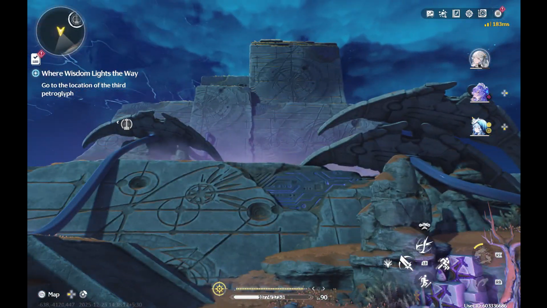 After talking to the Royan Girl, make your way to the location of the first Petroglyph.