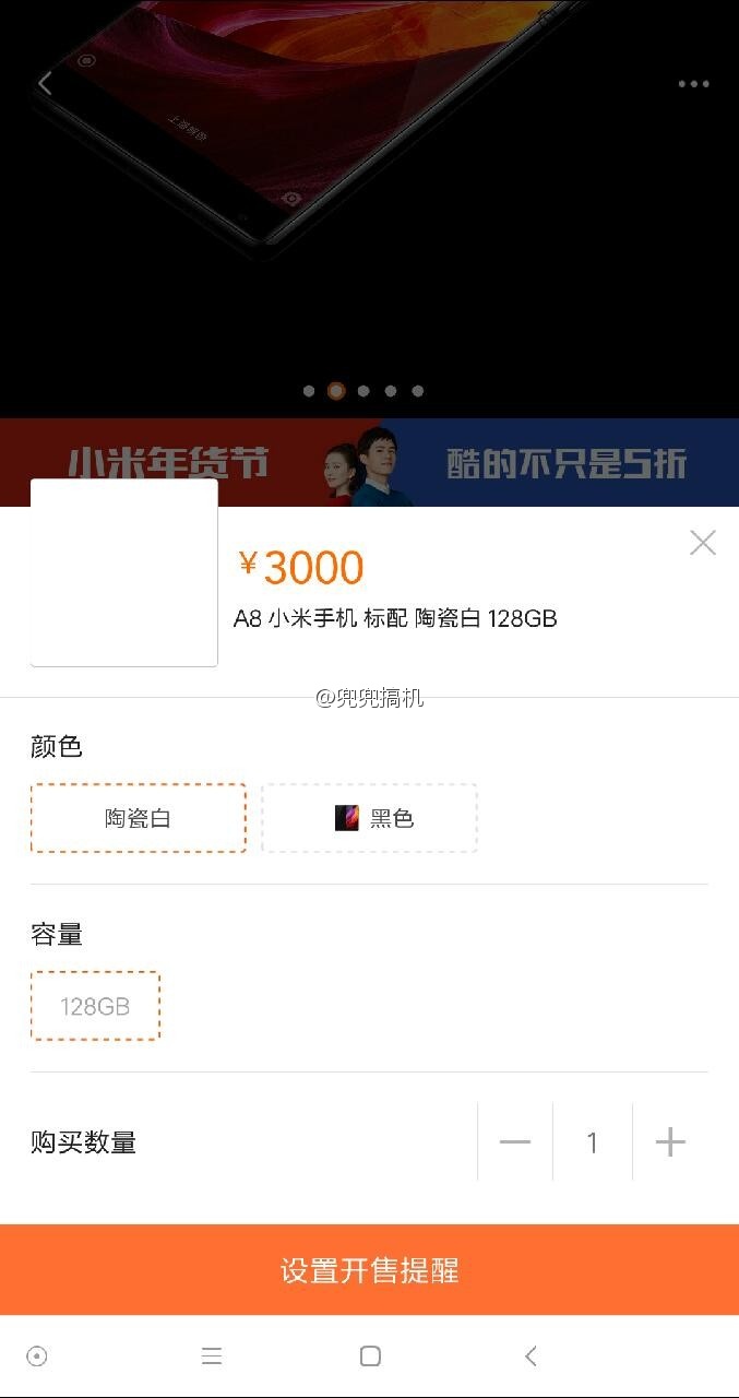 Although, we couldn’t find the white Mi MIX available for purchase on the official Xiaomi store desktop site. But we did get a tip from a Chinese source of the Mi MIX listed in White on a mobile store. Check out the screenshot below: