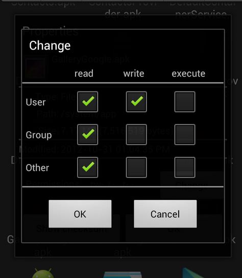 - Now press the OK button to change permissions, and exit ES File Explorer.