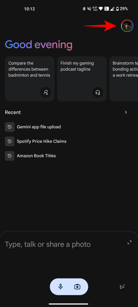 - Open the Gemini app on your Android device. Tap on your profile picture and select Settings.