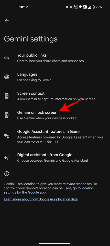 - Select Gemini on lock screen. Then enable Gemini responses on the lock screen.