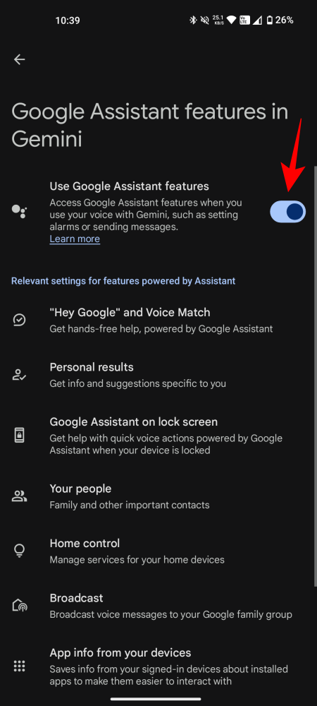 - If it’s not enabled already, make sure to turn on Google Assistant features in Gemini as well.