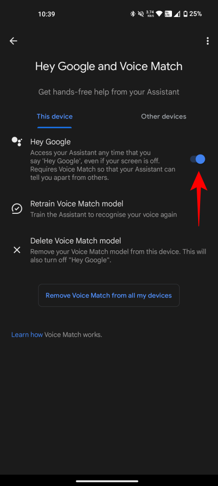 - Additionally, make sure that Hey Google and Voice Match are enabled.
