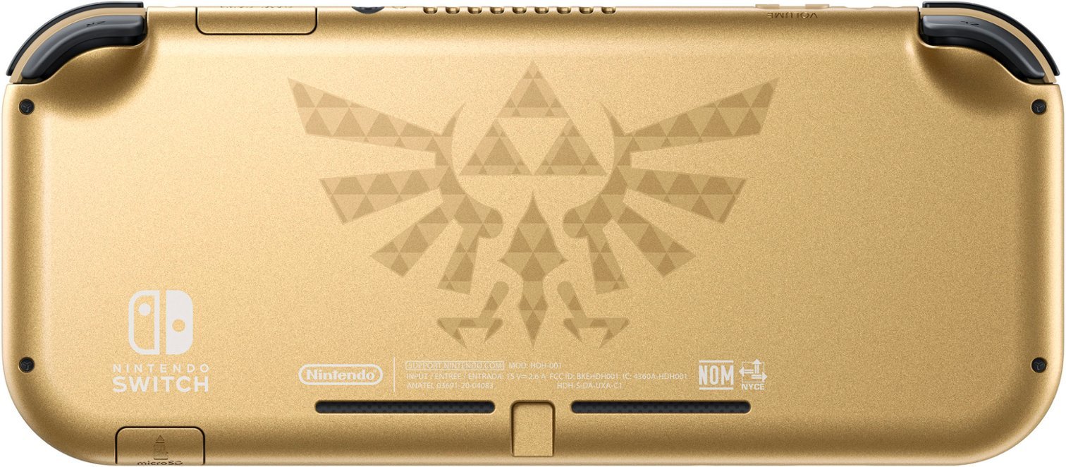 The Hyrule Edition Switch Lite boasts a luxurious gold colorway with sleek black accents, reminiscent of the Switch OLED Hyrule Edition. Its design features the iconic Hylian crest embossed on the back and a subtle Triforce symbol on the front’s lower-right corner. This elegant aesthetic is sure to appeal to Zelda fans and collectors alike.