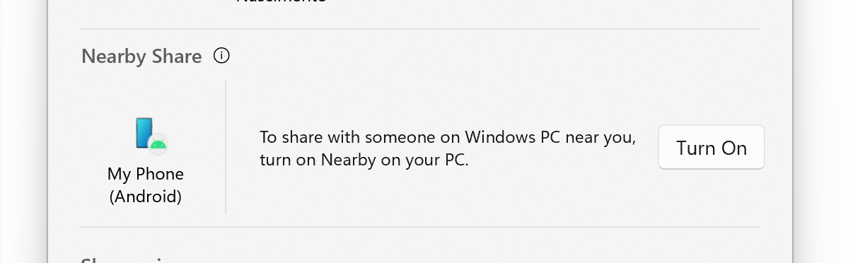 - Select ‘My Phone (Android) in the ‘Nearby Share’ section.