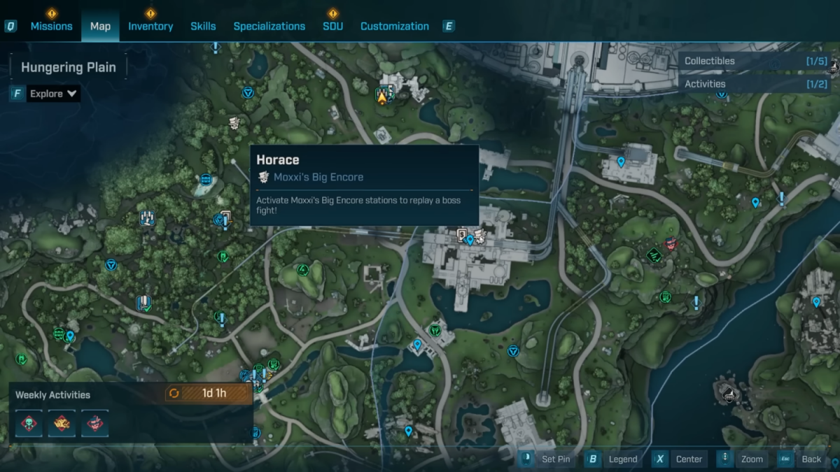 Horace’s fight involves phases with shields and health bars, so bring Shock weapons to break his defenses and Incendiary for his health pool. Stay mobile to dodge his AoE attacks and clear adds quickly to avoid being overwhelmed. After defeating him, use the purple glowing sphere (a grappling point) to exit. You can respawn him using Moxxi’s Big Encore Machine if unlocked, or reload the area manually. Higher difficulties like Hard mode increase drop chances.