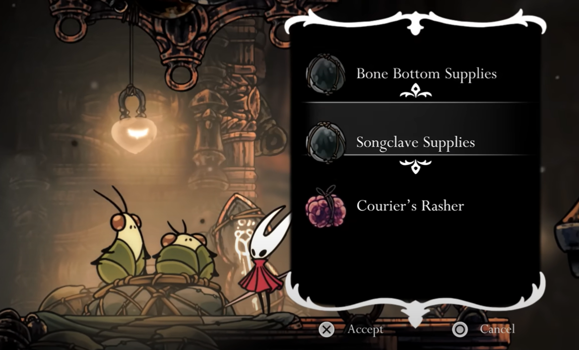 | Bone Bottom Supplies | Tipp & Pill, Bellhart | Unlock courier quests | Flick the Fixer, Bone Bottom | Through Shellwood, 1–2 mins | 80 Rosaries |