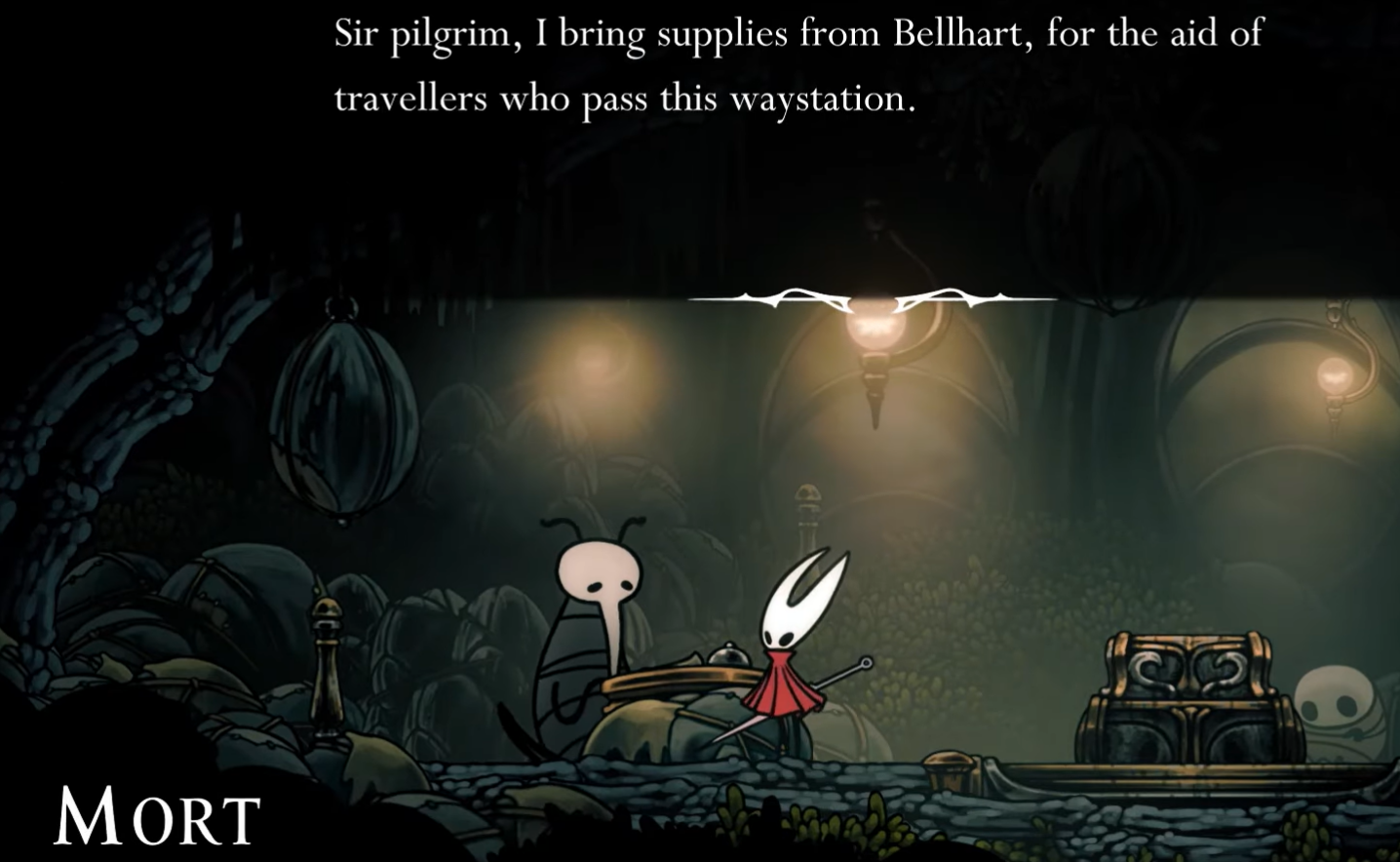 This quest tasks you with delivering essential supplies to a pilgrim camp in Bone Bottom, a cavernous area filled with skeletal structures and weaver remnants. Tipp and Pill provide the package, which you must protect from damage by enemies or falls, and you deliver it to a camp overseer.