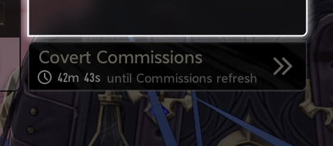 Afterward, the Covert tab appears in the Combat menu and the Covert Commissions shop becomes available.