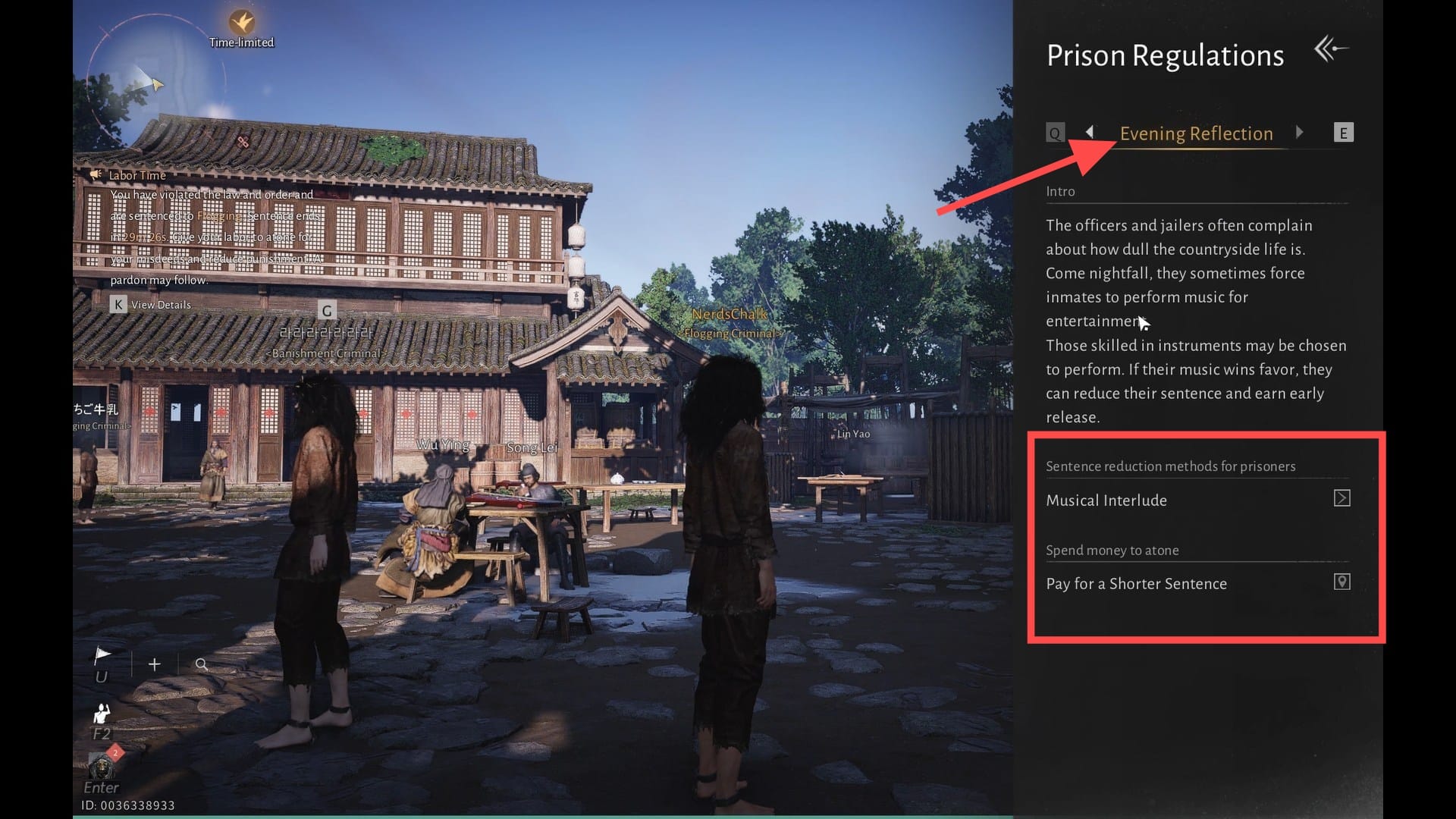 When arrested in the Qinghe region, you’re taken to Riverside Station—a wooden prison camp by the water. This location allows Work off Sentence and Musical Interlude activities.