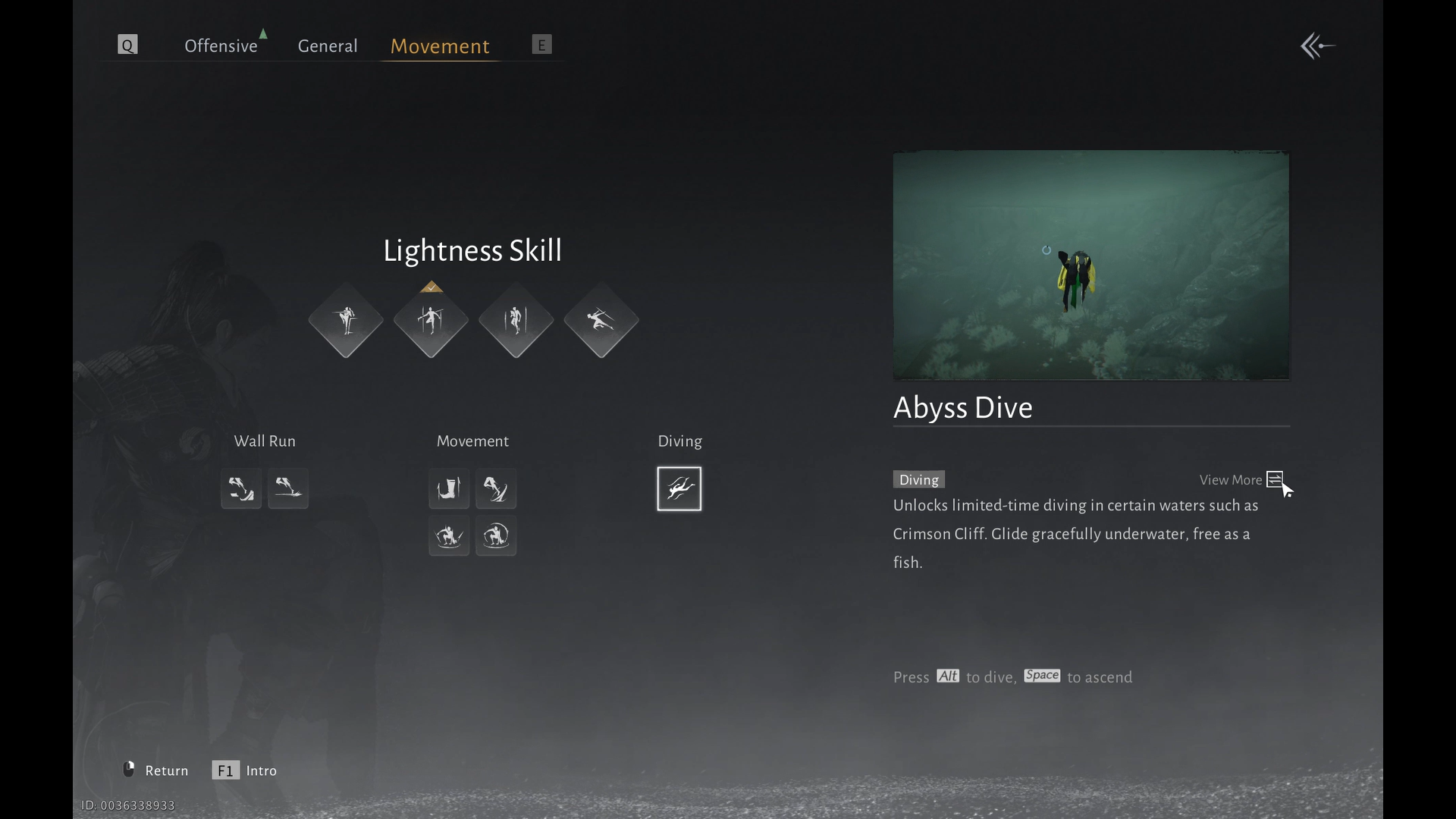 Unlike most movement-based Mystic Skills, Abyss Dive does not need to be unlocked through a quest — it is available by default in your Lightness Skill → Movement tree as soon as you begin the game.