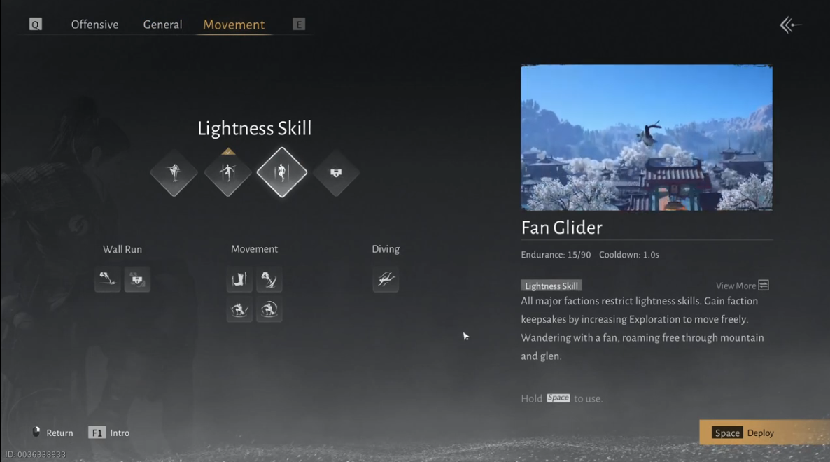 - A Lightness Movement skill that allows you to glide using a folding fan, ideal for long-distance aerial traversal.