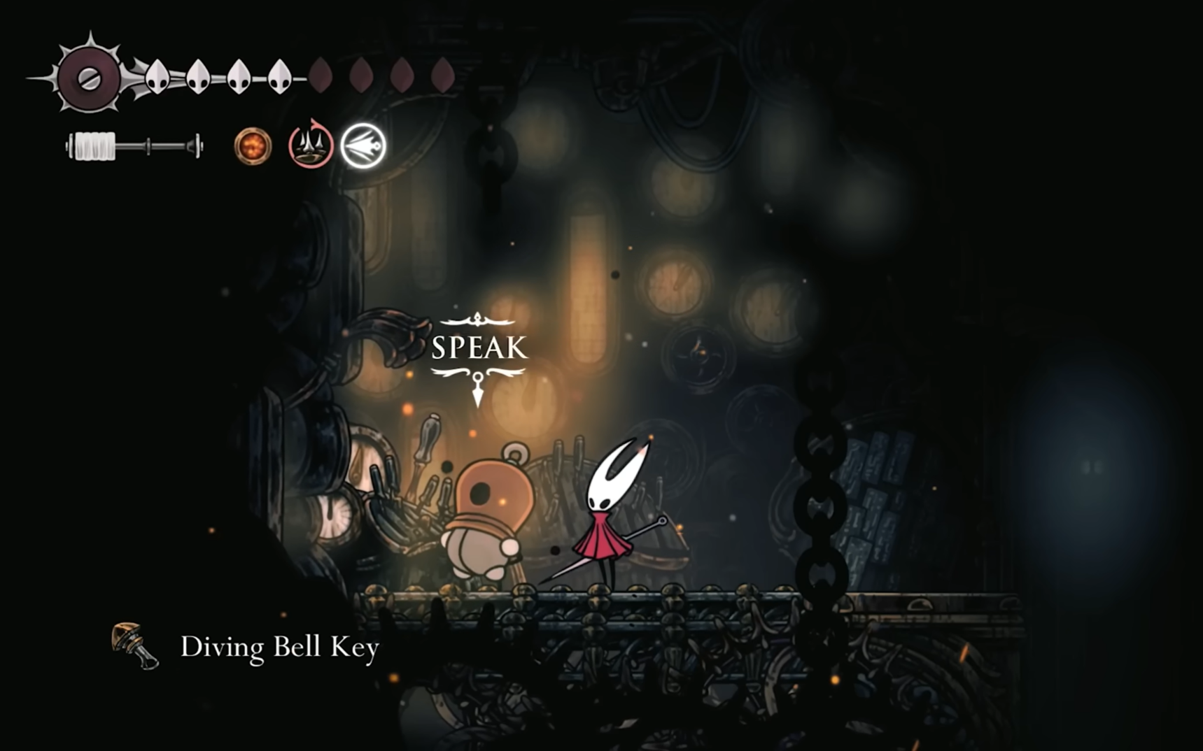 You’ll first encounter the Diving Bell in the Deep Docks, a challenging area filled with platforming and tough enemies. The bell itself is found behind a door that requires a Simple Key to open.