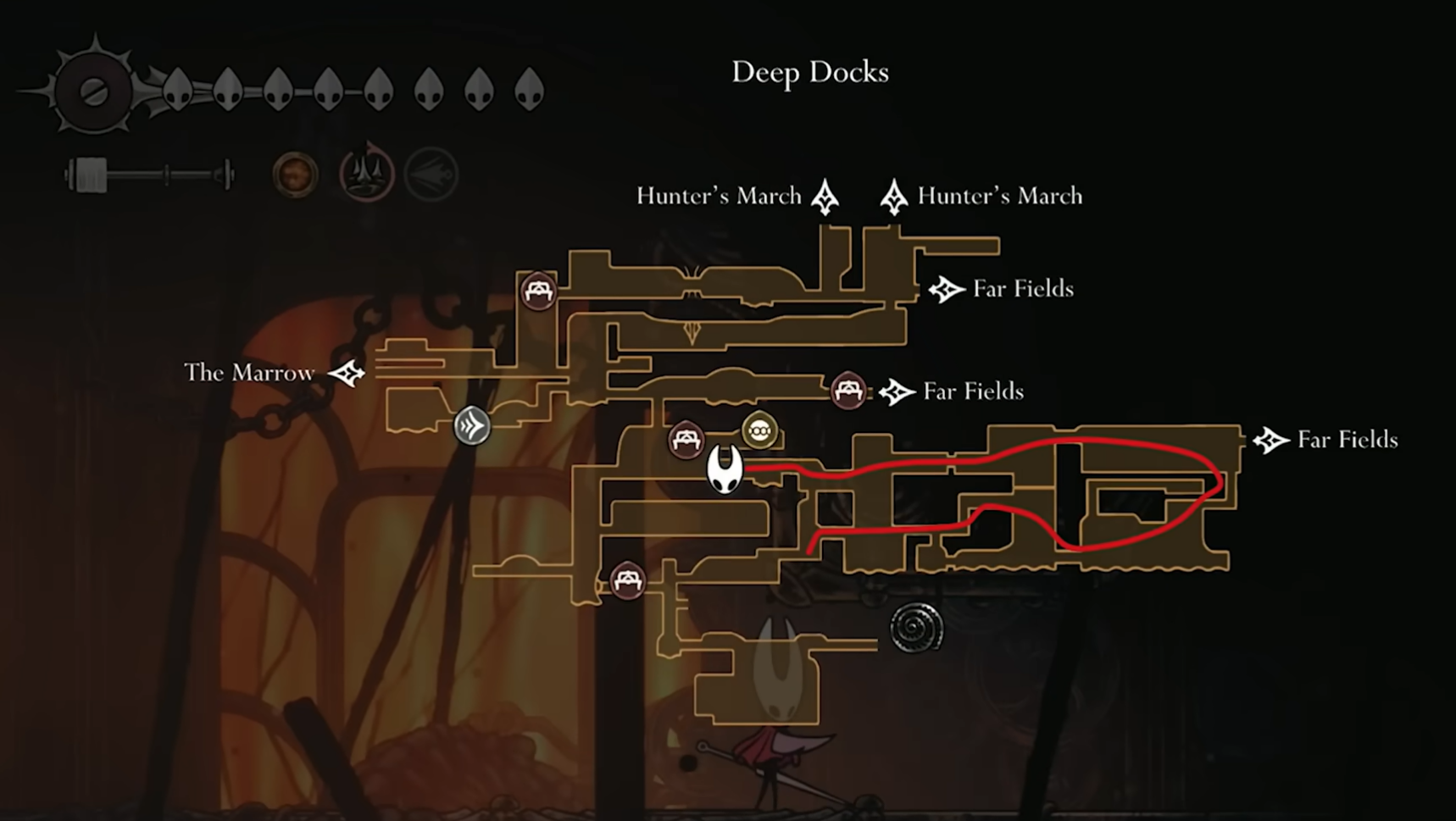 | Bell entrance | Deep Docks, beyond mini-boss & key door | After key obtained |